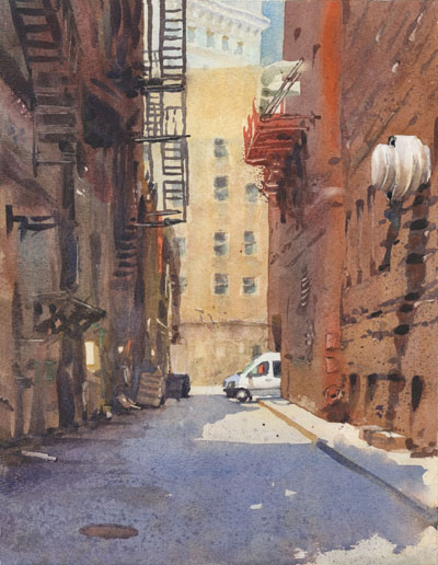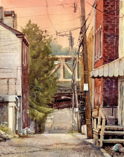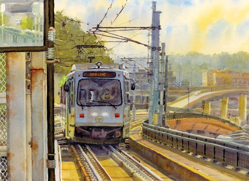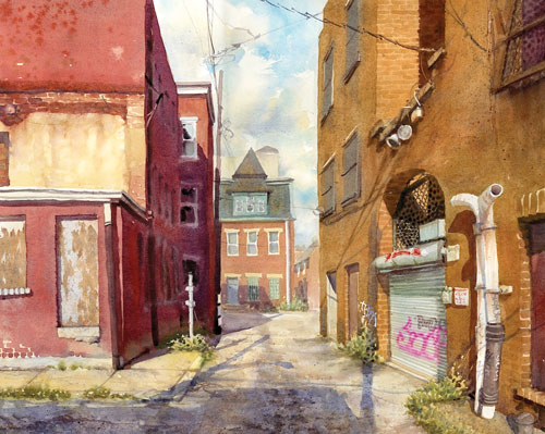 Nick Ruble is a versatile artist specializing in watercolor paintings. Originally from Denver, he currently resides and works in Pittsburgh. Ruble draws inspiration from the captivating qualities of Pittsburgh, from its dramatic natural landscapes to its rich industrial heritage, which shape the city’s distinct character. Through his art, he aims to capture the rhythm of everyday moments through a romantic lens, striking a masterful balance between spontaneity and precision. When not working in his studio, Ruble enjoys outdoor painting, rock climbing, and traveling across the country with his girlfriend and dog in their campervan. By immersing himself in a diverse array of environments, he captures the natural light, vibrant colors, and dynamic movement of everyday life.